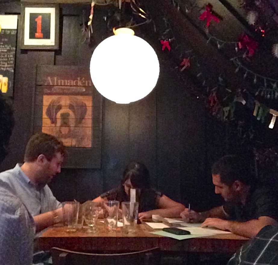 The very first PUBLETTERS was held on Tuesday, July 8th, 2014, at Doobies Bar. The last PUBLETTERS of the summer was July 29th. Over four Tuesdays, we enjoyed meeting all sorts of people–who handwrote more than 195 letters and cards!